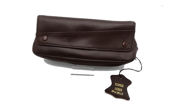 Η Θήκη πίπας καπνού υπάρχει σε χρώμα : καφέ , είναι κανονική σε μέγεθος, είναι κατασκευασμένη από γνήσιο δέρμα και διαθέτει 4 θήκες (οι 3 κλείνουν με φερμουάρ) : για καπνό με latex, για μια πίπα και για σύνεργα.