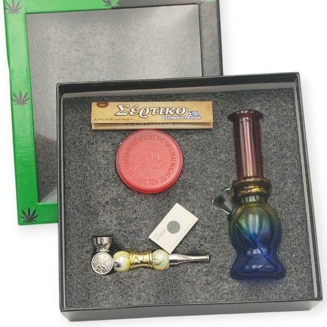 Σετ Γυάλινο Bong Amsterdam με Grinder μεγάλο 3 parts, Τζιβάνες, Χαρτάκια Αλευκαντα king size, Σίτες & Tobacco pipe