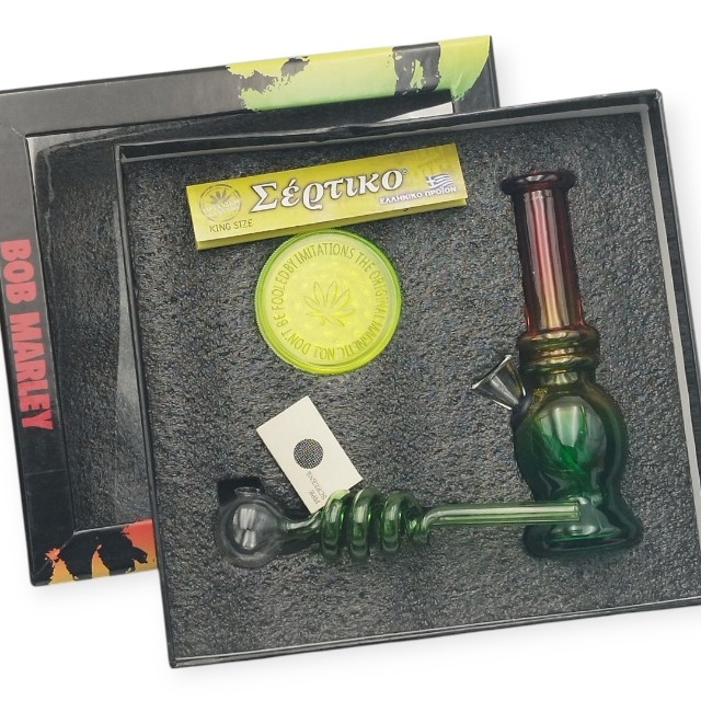Σετ Γυάλινο Bong Amsterdam με Grinder μεγάλο 3 parts, Τζιβάνες, Χαρτάκια Ηemp king size, Σίτες & bong glass pipe.