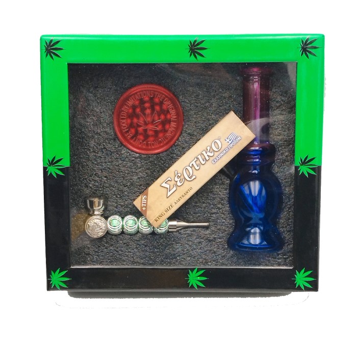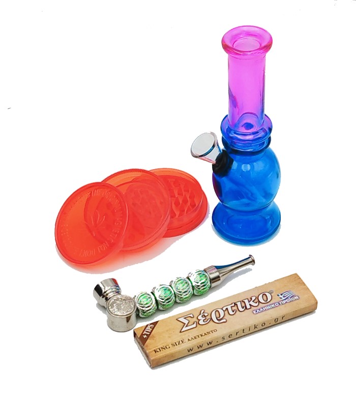 SET BONG GLASS AMSTERDAM ME GRINDER 3 PARTS, 1. ΠΙΠΑ ΚΑΠΝΟΥ & ΤΣΙΓΑΡΟΧΑΡΤΟ KING SIZE ΜΕ ΤΖΙΒΑΝΝΕΣ ΑΚΑΤΕΡΓΑΣΤΟ SERTIKO.