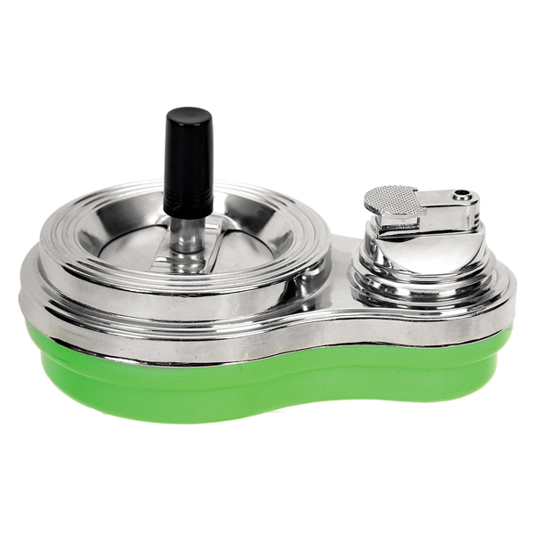 Σταχτοδοχείο Ασημί & Πράσινο Με Ενσωματωμένο Αναπτήρα