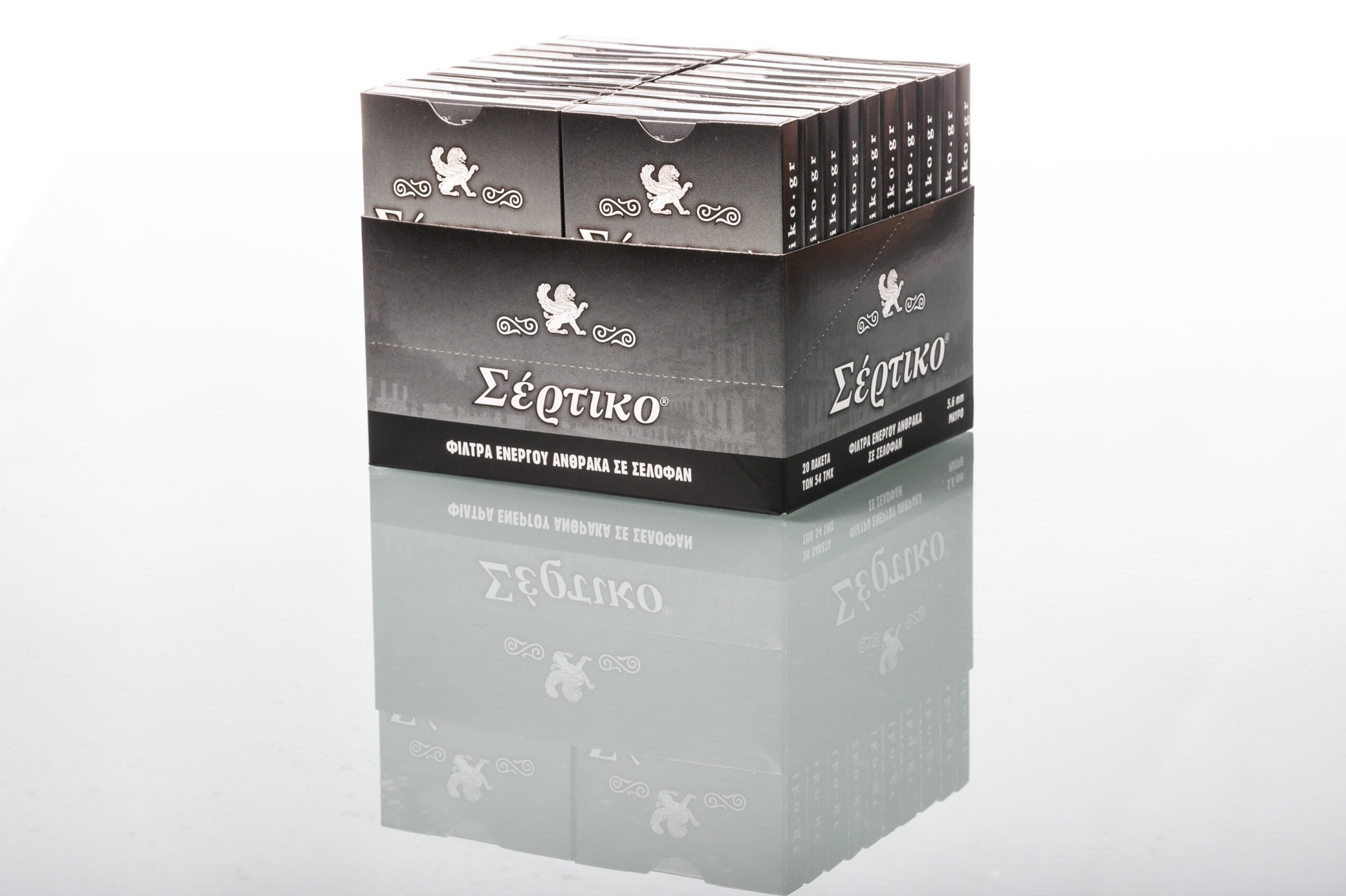 Κουτί με 20 φιλτράκια στριφτού ΣΕΡΤΙΚΟ ΜΑΥΡΟ” ενεργού άνθρακα 5,6mm extra silm.