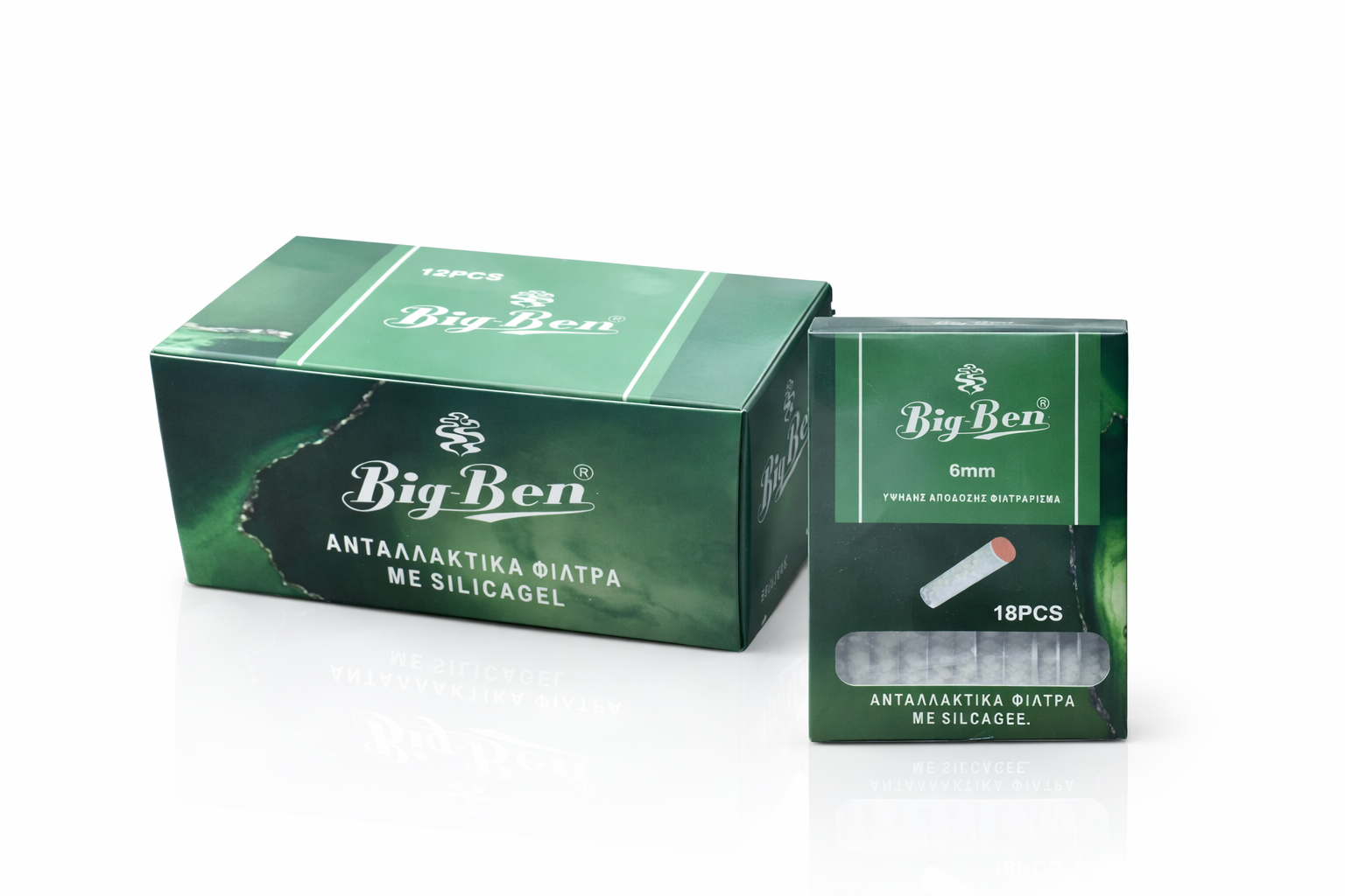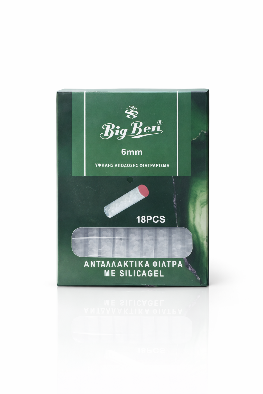 Η συσκευασία περιλαμβάνει 18 ανταλλακτικά φίλτρα silica gel για πίπες τσιγάρου BIG-BEN. Το φίλτρο κρίνεται απαραίτητο να αλλαχτεί, όταν το χρώμα του μεταβάλλεται από λευκό σε σκούρο καφέ