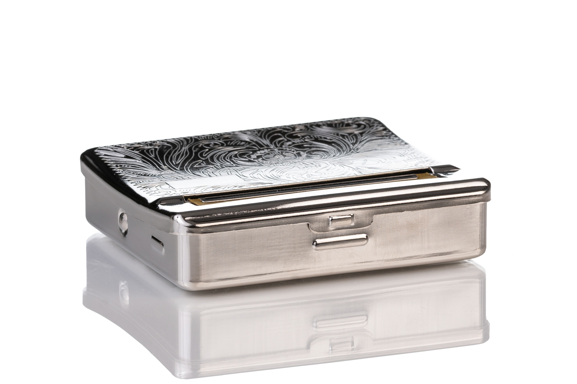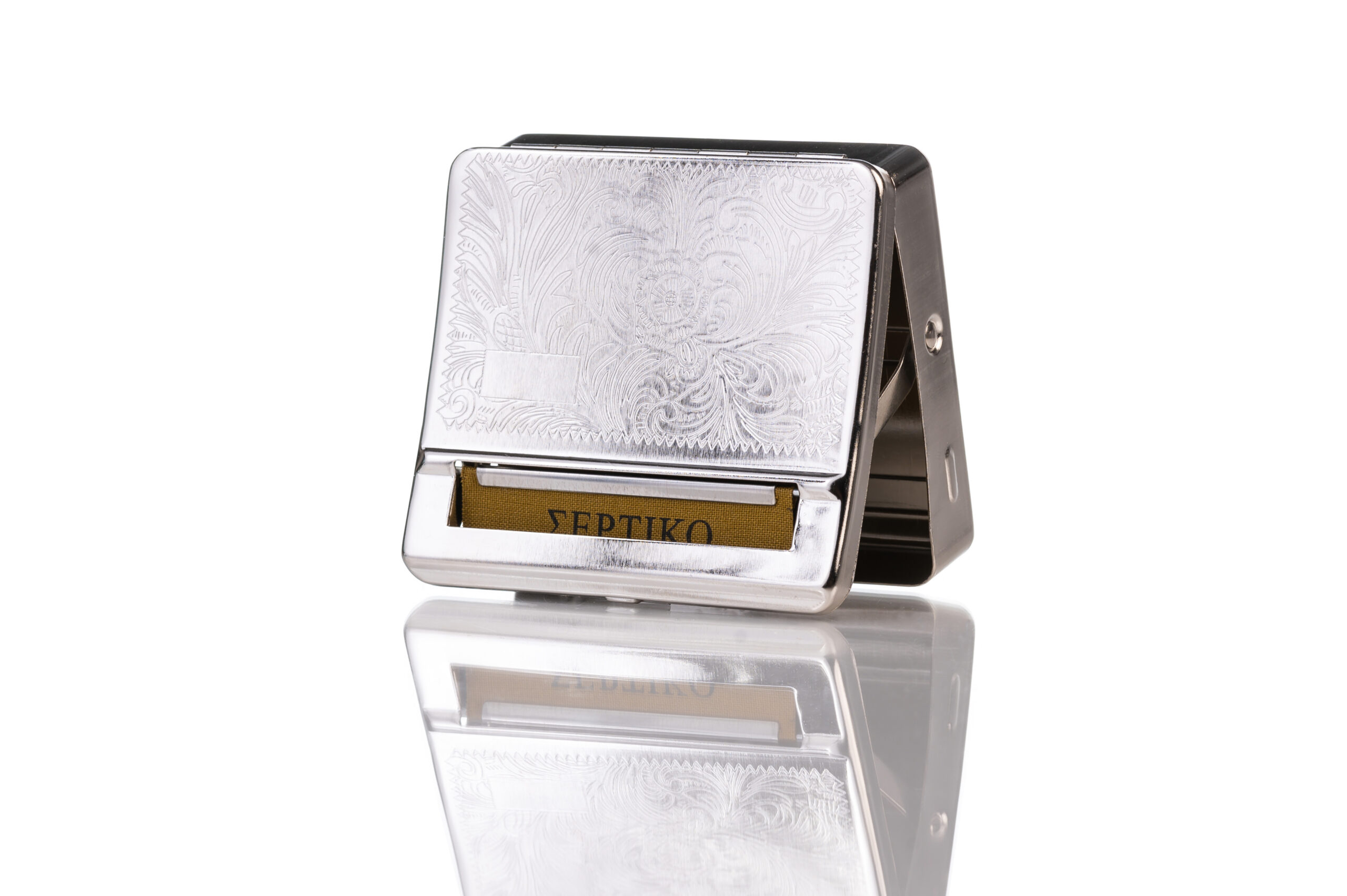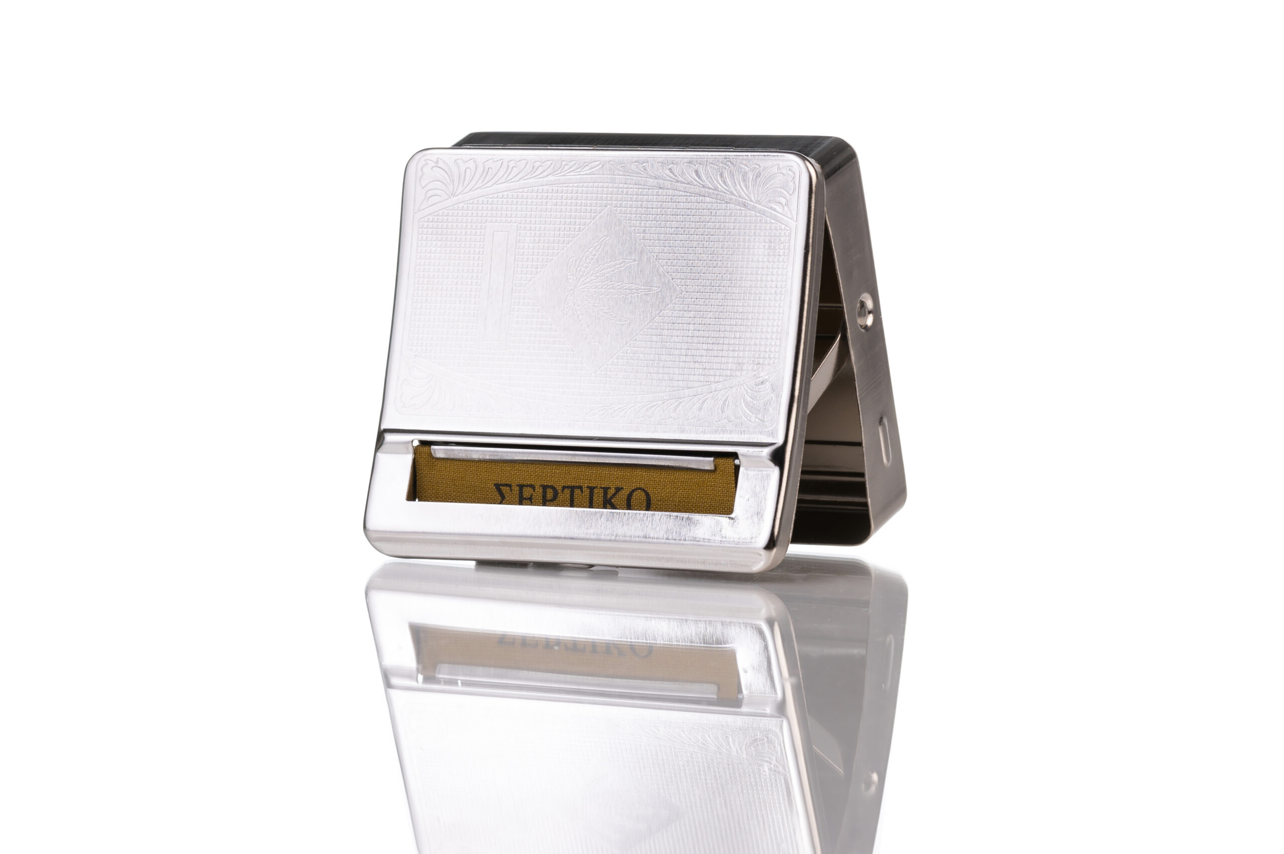 Η μηχανή στριφτού Σέρτικο ταμπακιέρα ασημί μεταλλική Με Διάφορα Σχεδία είναι συμβατή με στριφτά 6ΜΜ 5.7ΜΜ & 5.6ΜΜ & 5.5ΜΜ μπορεί να στρίψει το αγαπημένο σας κανονικό στριφτό, αλλά και να αποθηκεύσετε σε αυτήν καπνό ή τα σύνεργα σας. Διαθέτει υφασμάτινο πανάκι για καλύτερο αποτέλεσμα και είναι ιδανική για όλα τα στριφτά.