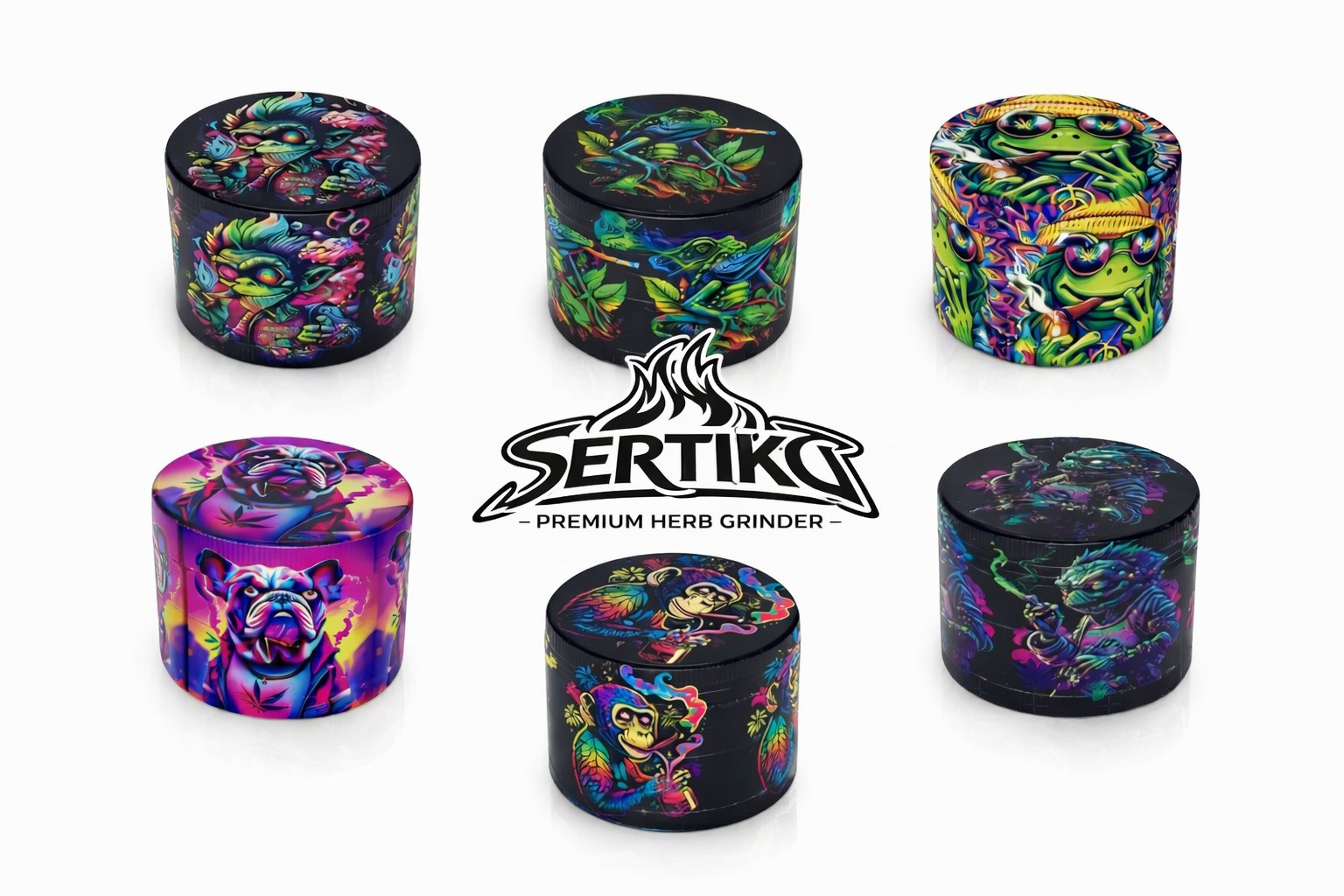 Ο SERTIKO Premium Herb Grinder – Psychedelic Animal Series είναι ένας υψηλής ποιότητας μεταλλικός τρίφτης βοτάνων σχεδιασμένος για ανθεκτικότητα, άνετη χρήση και μοναδική αισθητική. Η σειρά διαθέτει εντυπωσιακά psychedelic animal σχέδια με έντονα χρώματα και καλλιτεχνικά γραφικά που ξεχωρίζουν στη βιτρίνα κάθε καταστήματος.